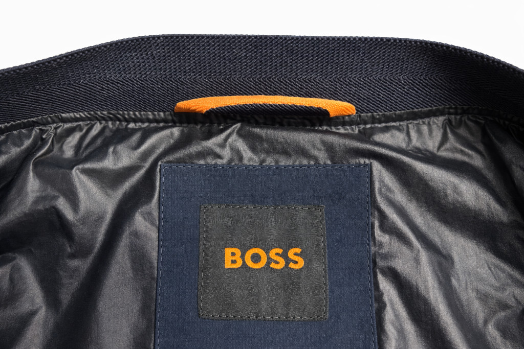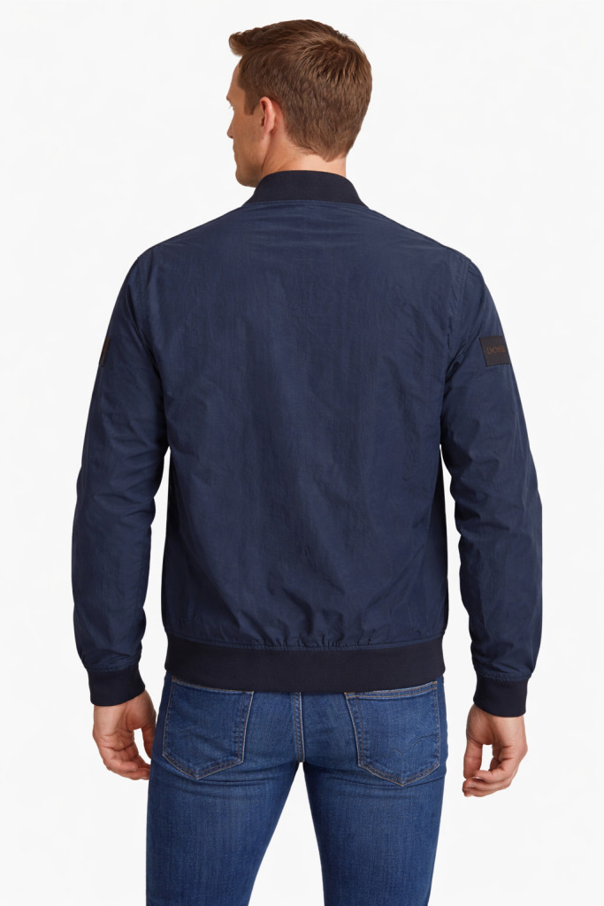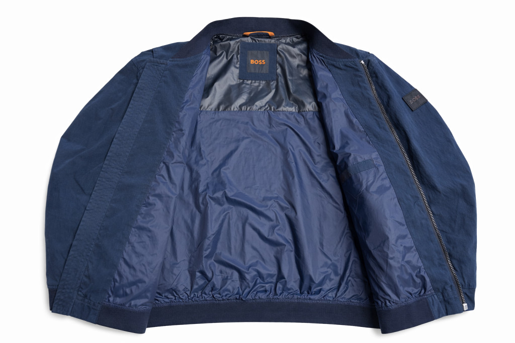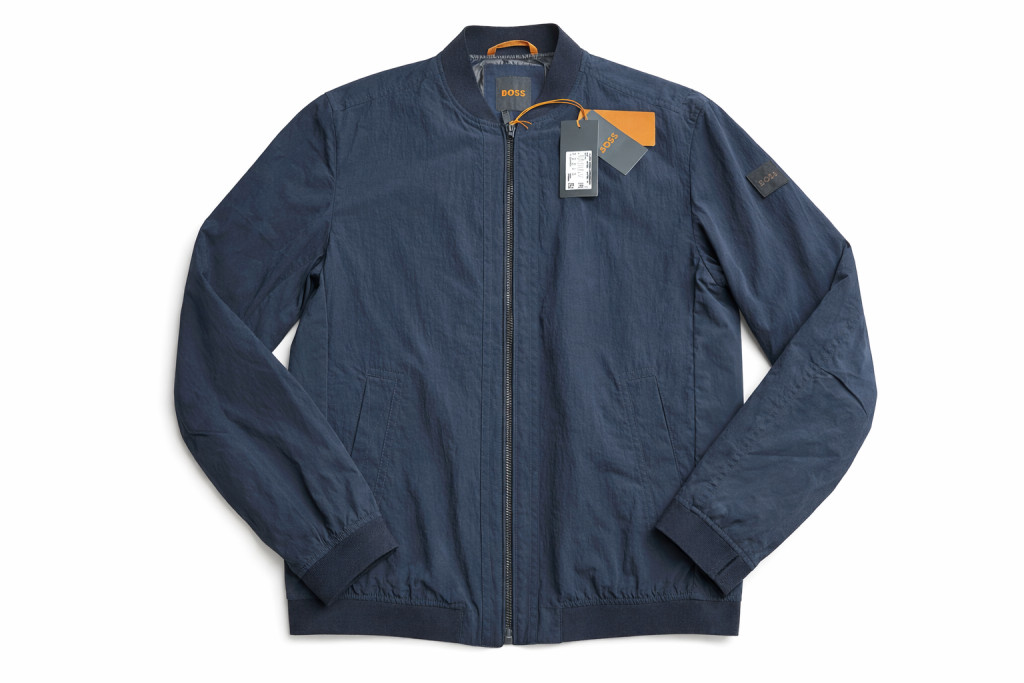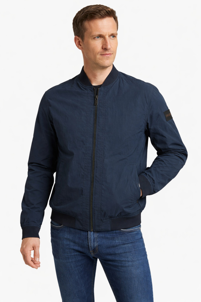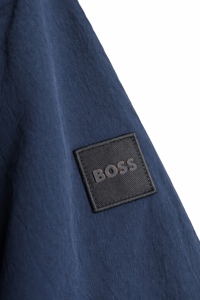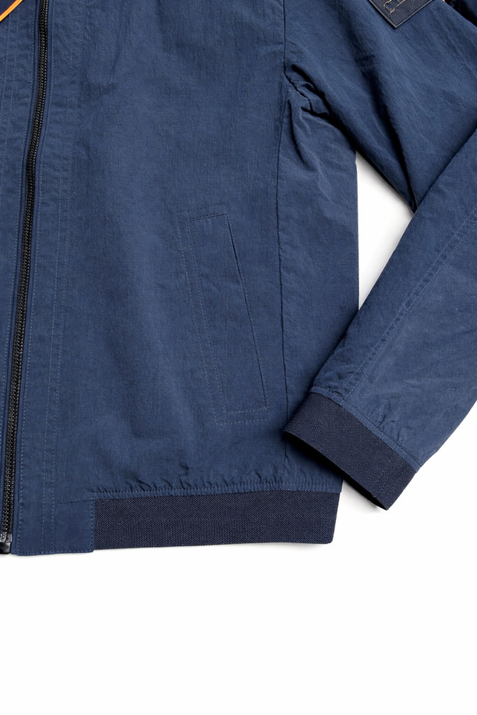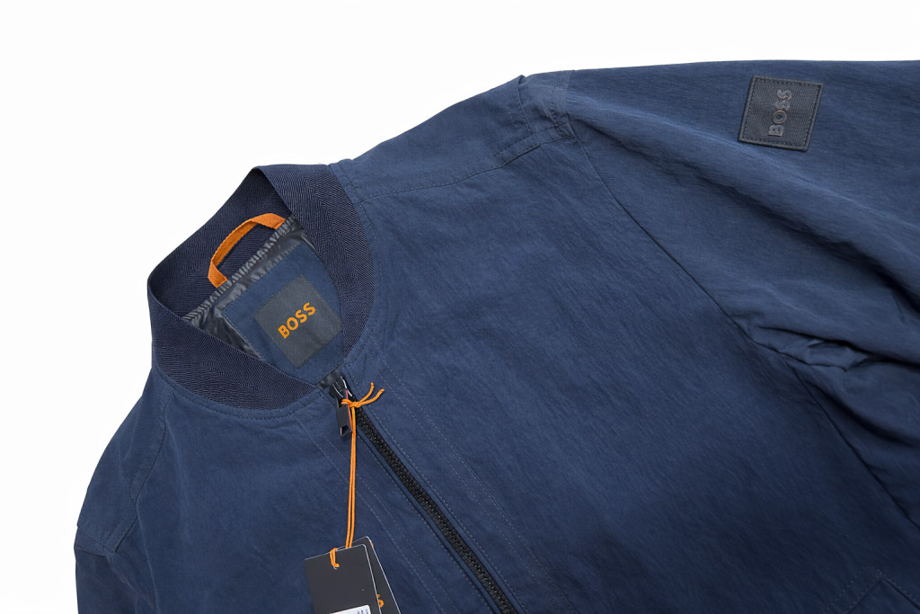 Elején zsebekkel. Belső zsebbel. Bal karján logó mintával.